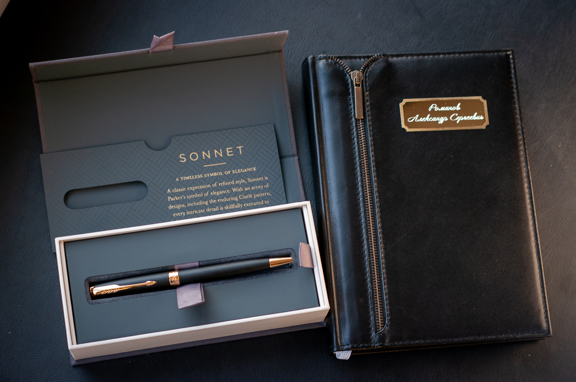 Подарочный набор VIP Ежедневник и ручка Parker Sonnet Matte Black GT от официального дилера Parker в Ангарске. Вы можете дополнительно заказать гравировку, которая подчеркнет Вашу оригинальность и придаст памятность статусному подарку. Все ручки Паркер поставляются в фирменном футляре.