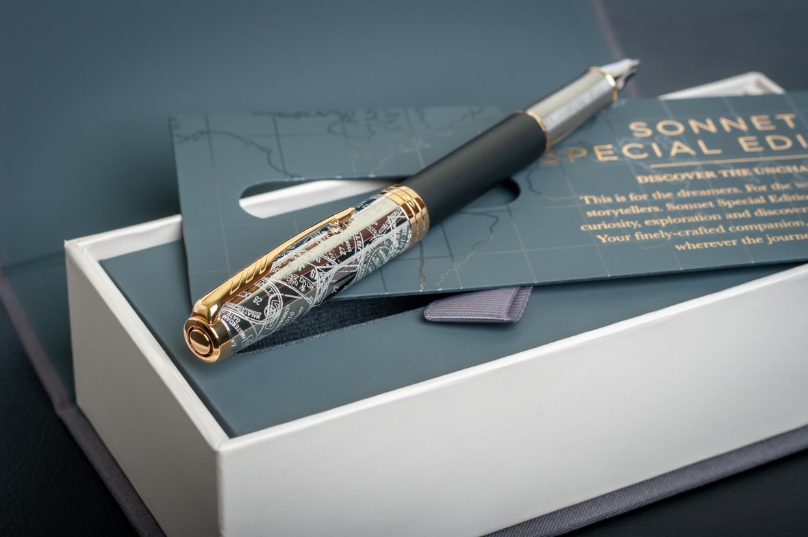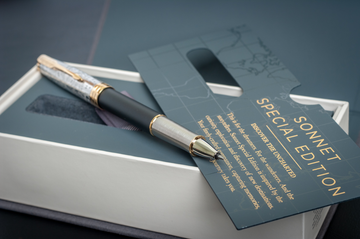 Ручка роллер Parker Sonnet Special Edition 2018 Impression Matte Black GT от официального дилера Parker в Ангарске. Вы можете дополнительно заказать гравировку, которая подчеркнет Вашу оригинальность и придаст памятность статусному подарку. Все ручки Паркер поставляются в фирменном футляре.