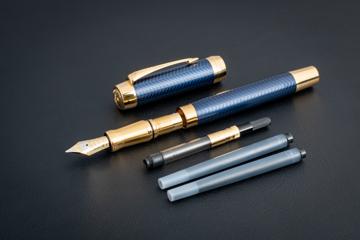 Перьевая ручка Parker Duofold Prestige Centennial Blue Chevron GT (M) от официального дилера Parker в Ангарске. Вы можете дополнительно заказать гравировку, которая подчеркнет Вашу оригинальность и придаст памятность статусному подарку. Все ручки Паркер поставляются в фирменном футляре.