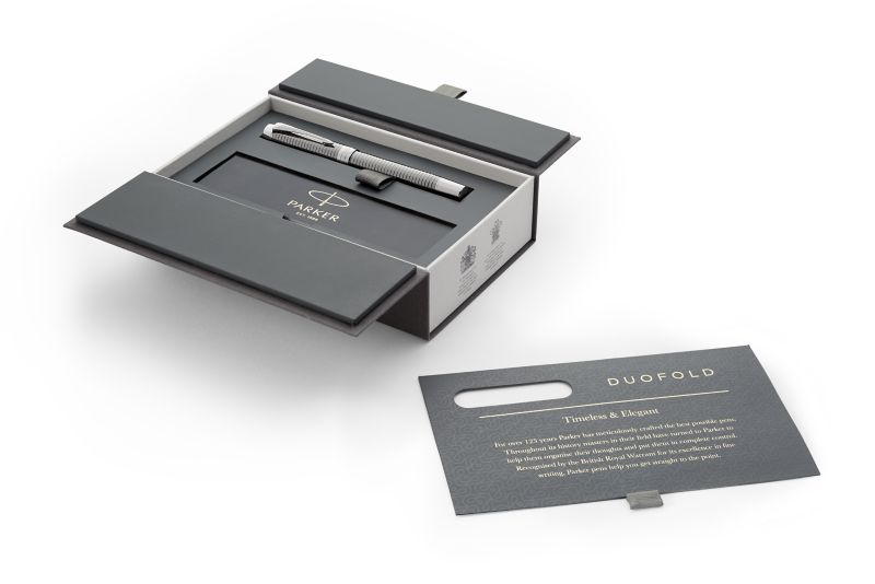 Ручка роллер Parker Duofold Prestige Ruthenium Chiselled CT от официального дилера Parker в Ангарске. Вы можете дополнительно заказать гравировку, которая подчеркнет Вашу оригинальность и придаст памятность статусному подарку. Все ручки Паркер поставляются в фирменном футляре.