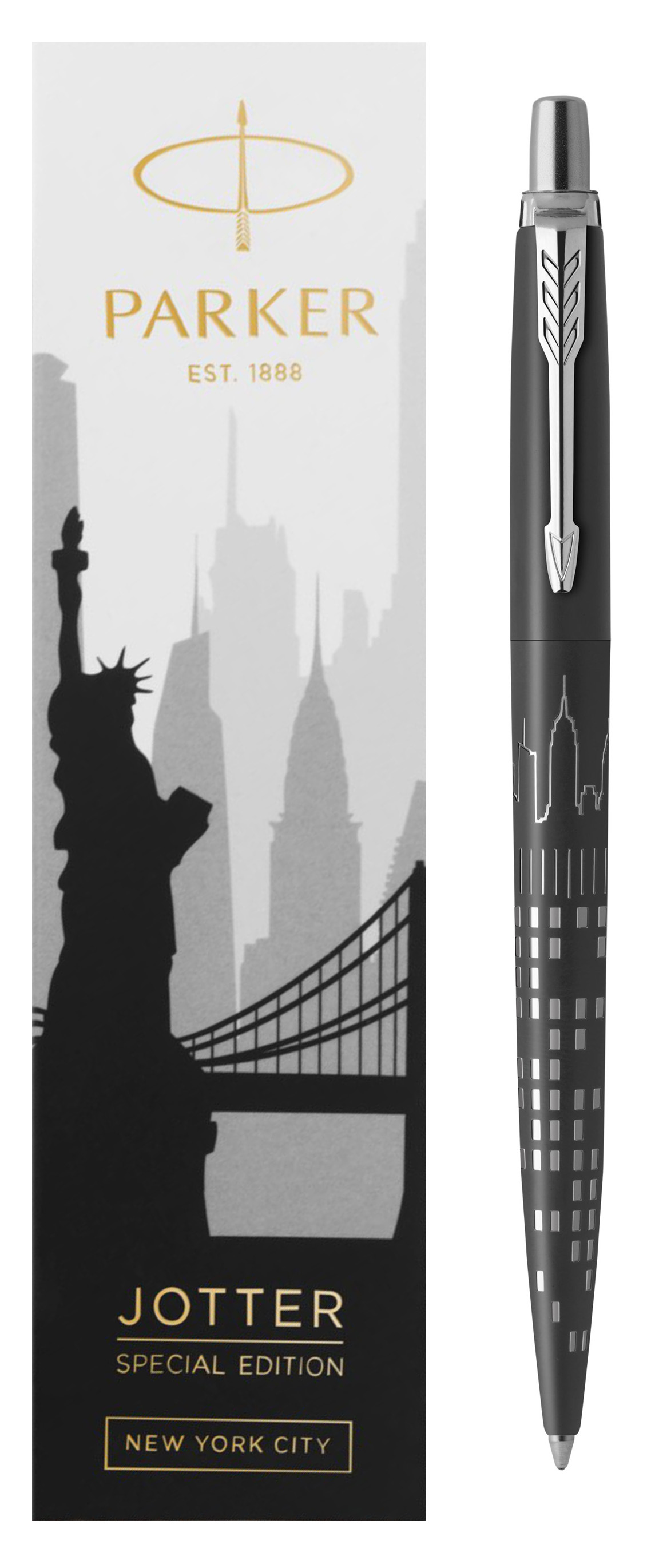 Ручка шариковая Parker Jotter New York Black CT от официального дилера Parker в Ангарске. Вы можете дополнительно заказать гравировку, которая подчеркнет Вашу оригинальность и придаст памятность статусному подарку. Все ручки Паркер поставляются в фирменном футляре.