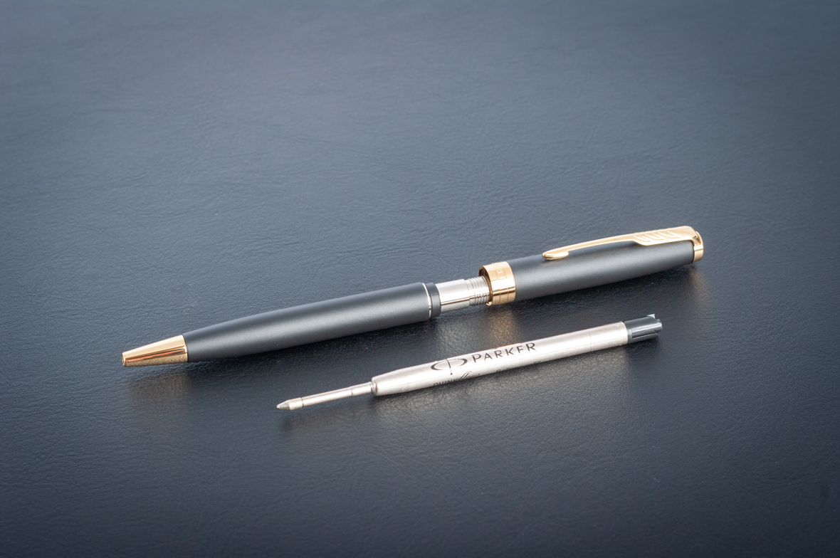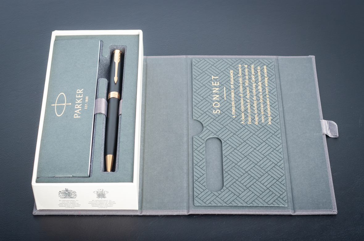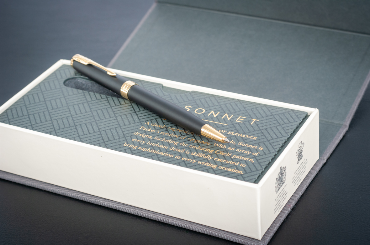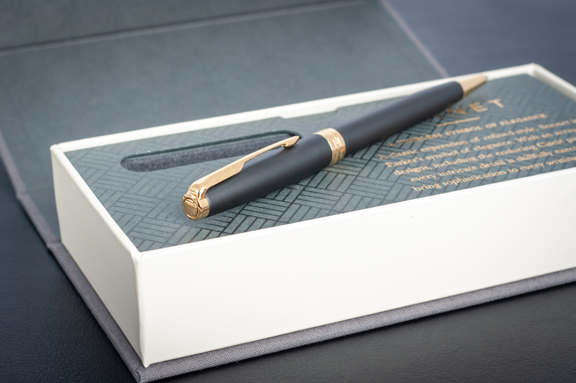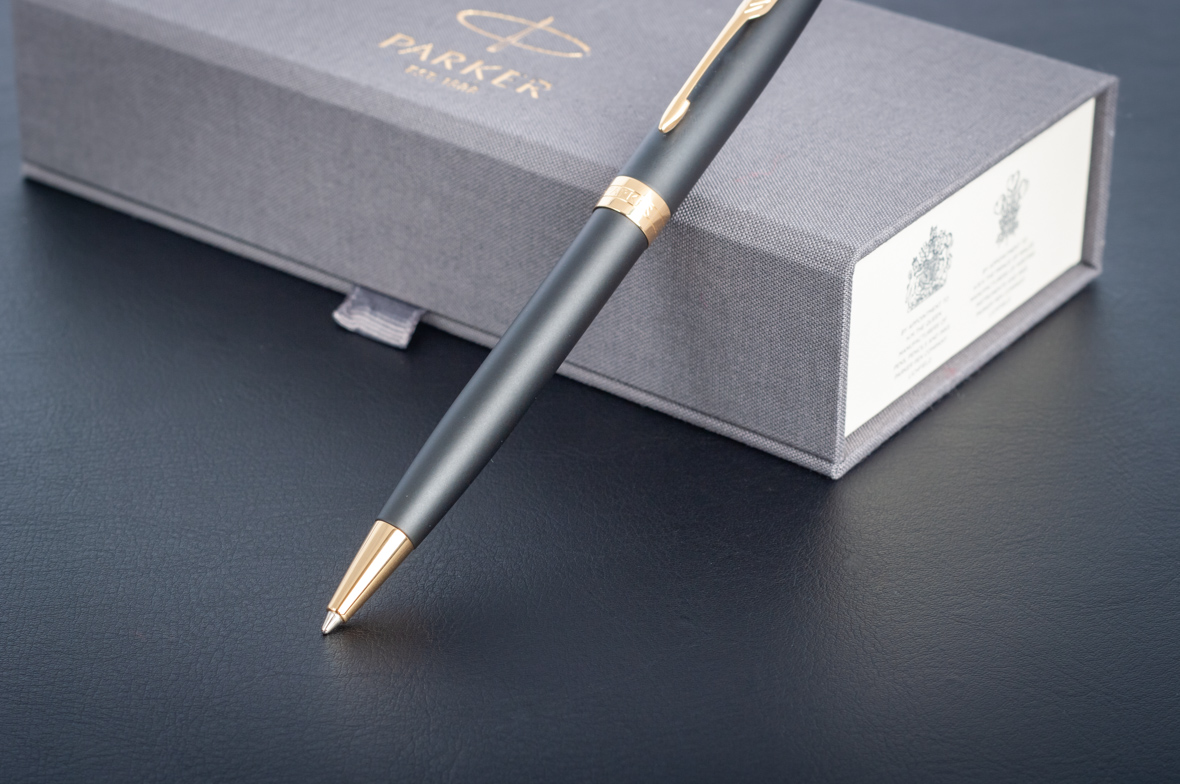 Шариковая ручка Parker Sonnet Matte Black GT от официального дилера Parker в Ангарске. Вы можете дополнительно заказать гравировку, которая подчеркнет Вашу оригинальность и придаст памятность статусному подарку. Все ручки Паркер поставляются в фирменном футляре.
