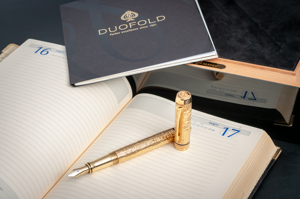 Перьевая ручка Parker Duofold Solid Gold F К от официального дилера Parker в Ангарске. Вы можете дополнительно заказать гравировку, которая подчеркнет Вашу оригинальность и придаст памятность статусному подарку. Все ручки Паркер поставляются в фирменном футляре.