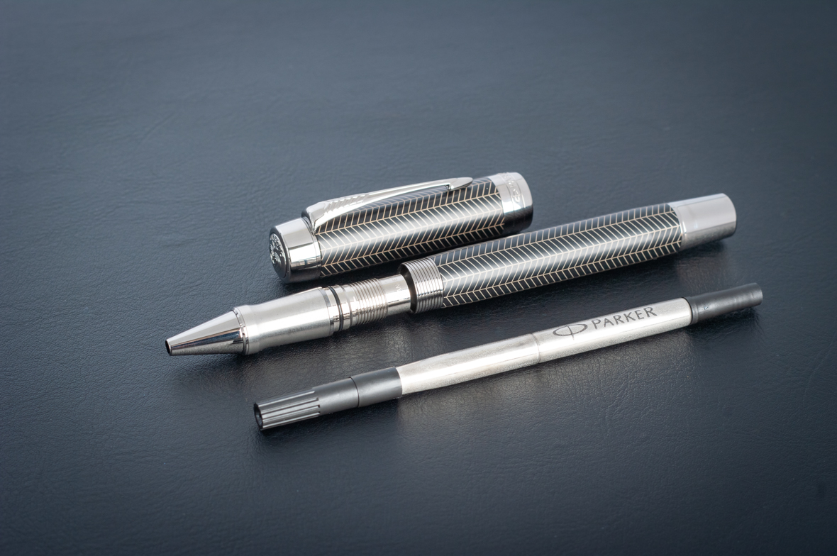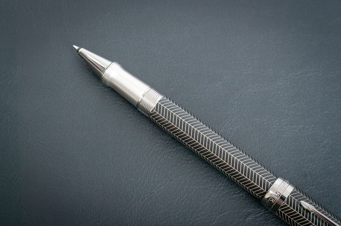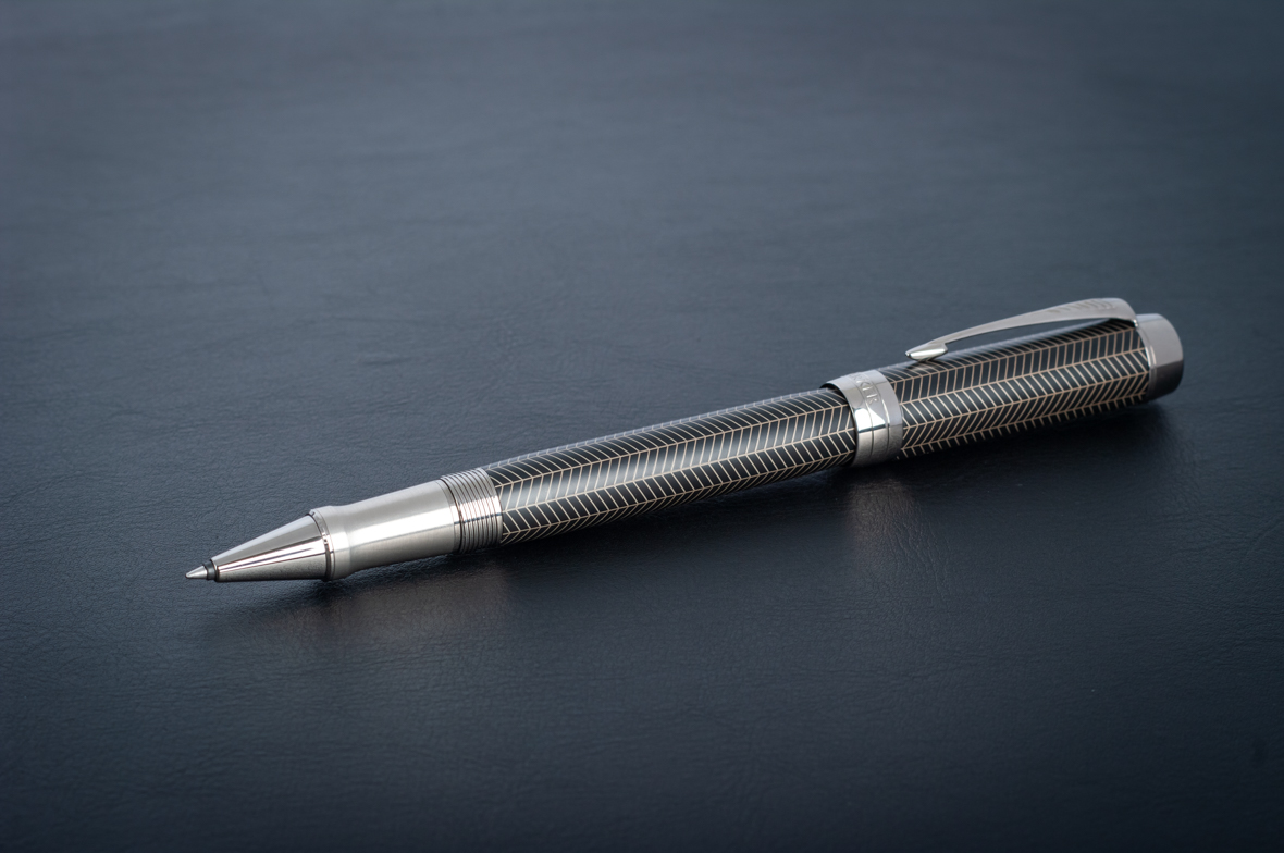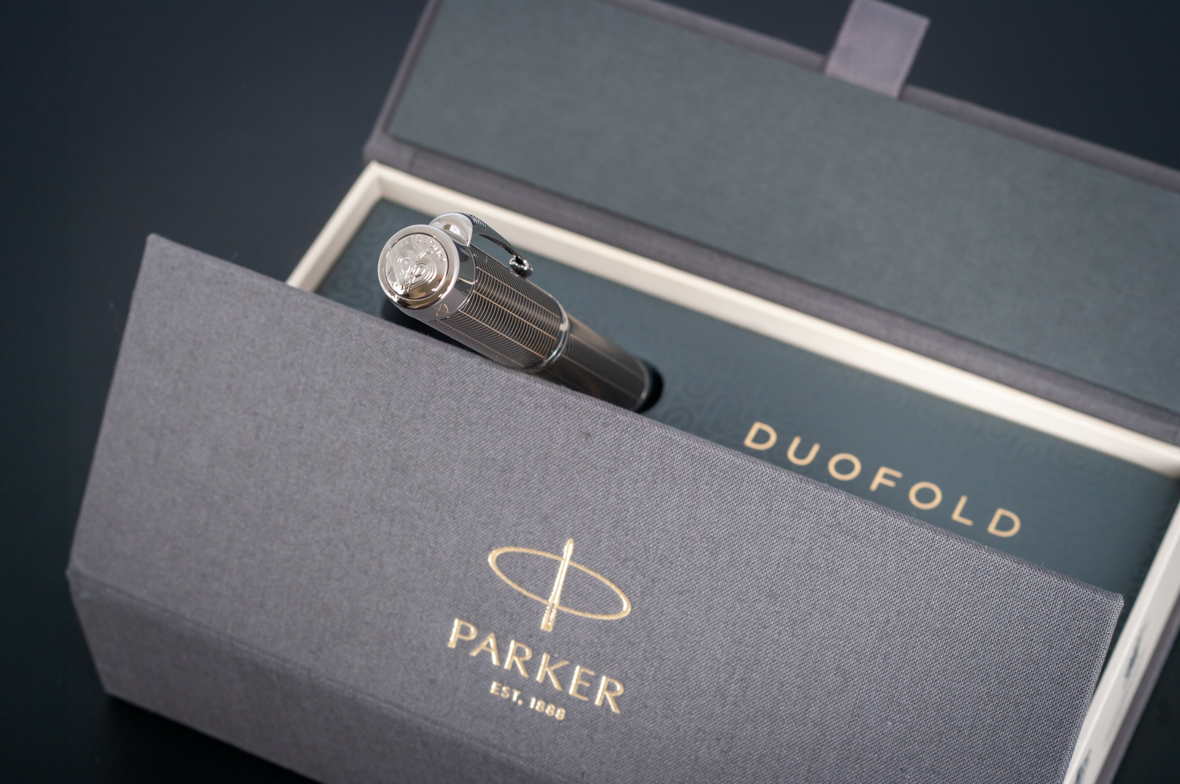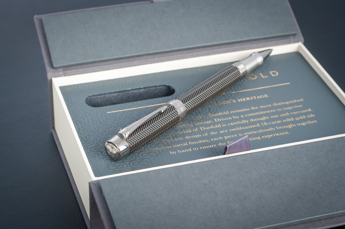 Ручка роллер Parker Duofold Prestige Centennial Black Chevron CT от официального дилера Parker в Ангарске. Вы можете дополнительно заказать гравировку, которая подчеркнет Вашу оригинальность и придаст памятность статусному подарку. Все ручки Паркер поставляются в фирменном футляре.
