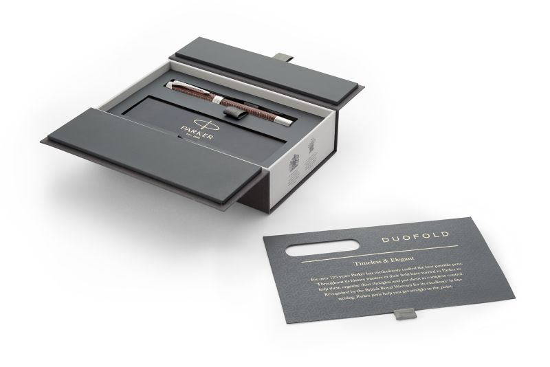 Ручка роллер Parker Duofold Prestige Centennial Burgundy Chevron CT от официального дилера Parker в Ангарске. Вы можете дополнительно заказать гравировку, которая подчеркнет Вашу оригинальность и придаст памятность статусному подарку. Все ручки Паркер поставляются в фирменном футляре.