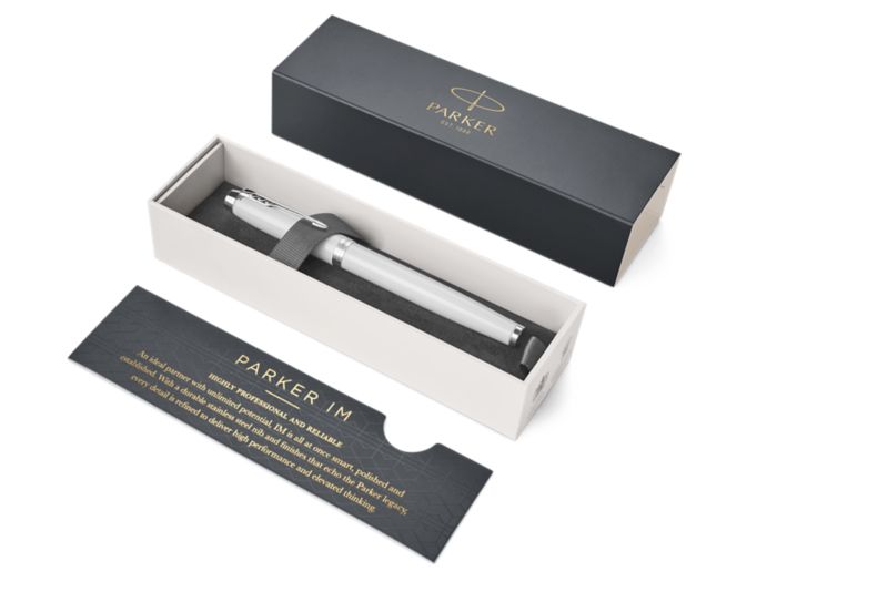 Ручка роллер Parker IM Metal White CT от официального дилера Parker в Ангарске. Вы можете дополнительно заказать гравировку, которая подчеркнет Вашу оригинальность и придаст памятность статусному подарку. Все ручки Паркер поставляются в фирменном футляре.